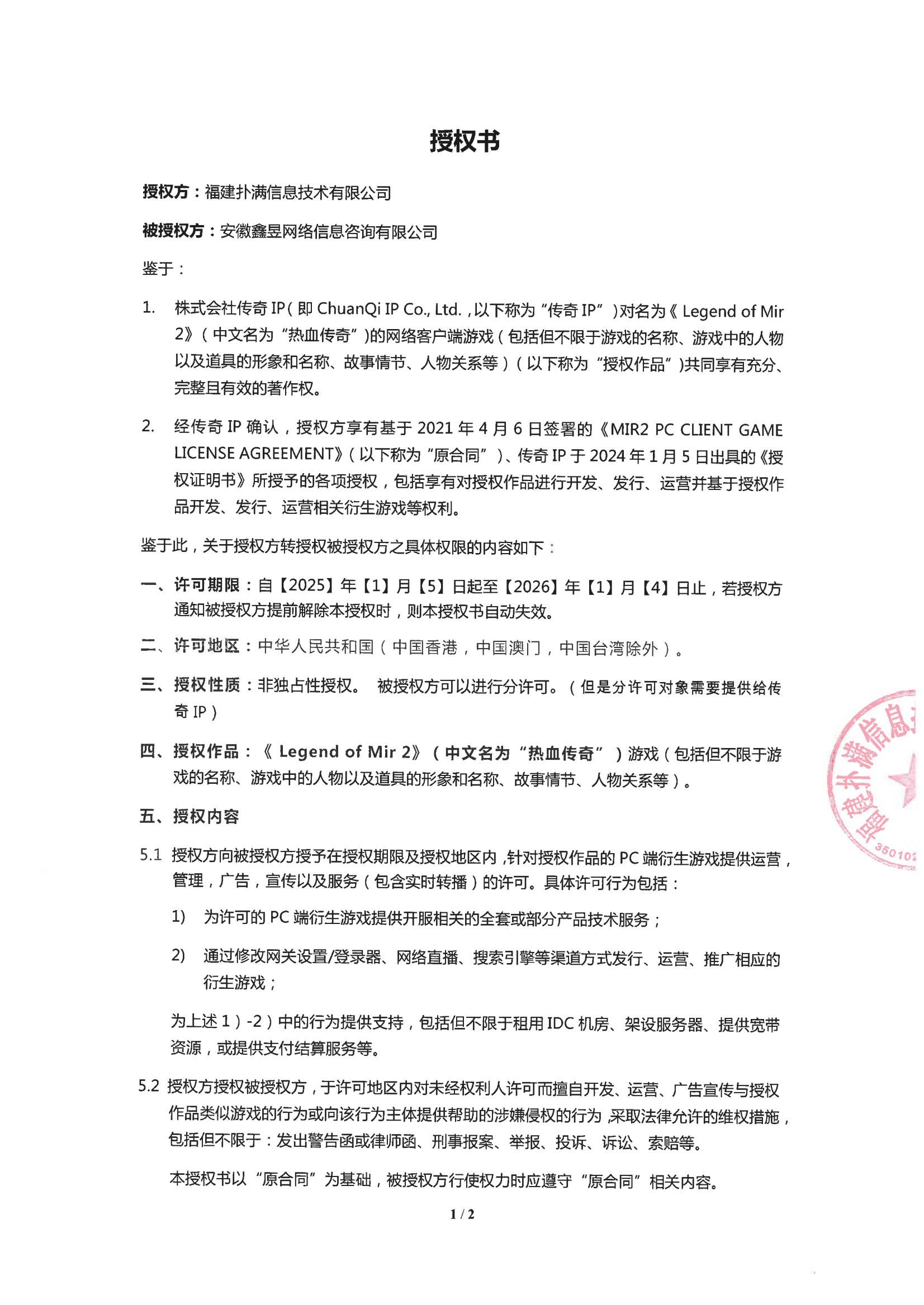 關(guān)于對(duì)《The Legend of Mir 2》(熱血傳奇) 衍生品游戲直播的嚴(yán)正聲明
